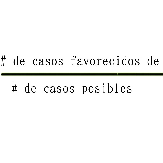 la probabilidad de que suceda o desarrolle un determinado suceso, se expresa matemáticamente por el cociente que resulta de dividir el numero total de casos que son probables ( favorables a que suceda) entre el numero total de casos posibles.